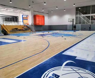 杭州26號地塊商務金融籃球場木地板案例,場館選用歐氏地板體育館專用雙層龍骨雙減震結構運動木地板,體育館總施