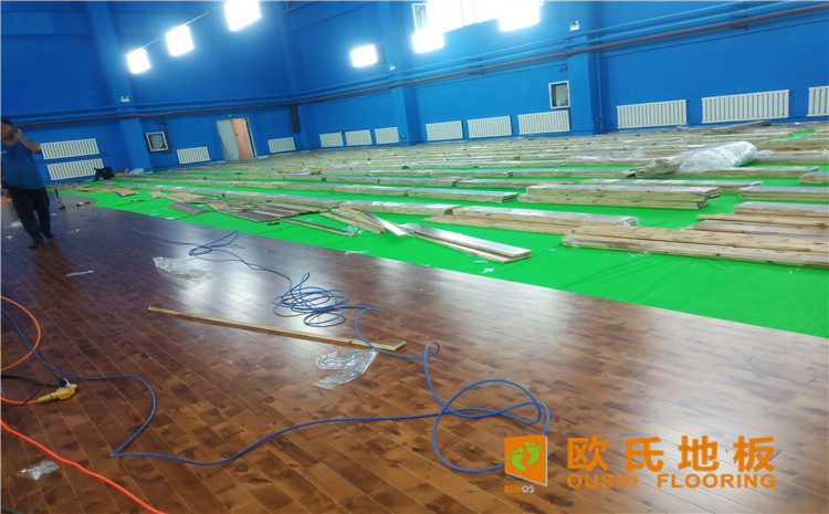 烏魯木齊北京北路東風花苑小區個人羽毛球館木地板項目,項目選用羽毛球館專用單層龍骨結構楓樺木運動地板,場館總鋪設面積679平方米。